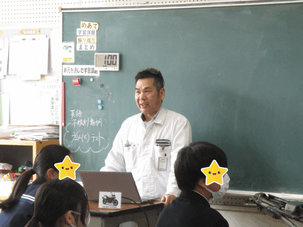 当社のものづくりについて、中学生の皆さんにも直感的に伝わるよう、「抜く(プレス)」「曲げる(ベンダー)」「つなぐ(溶接)」「守る・魅せる(表面処理)」という分かりやすいキーワードでご紹介しました。また、ものづくりの技術は特別な才能だけで成り立つものではなく、「挨拶をすること」「期限内に課題を提出すること」「失敗を繰り返しながら挑戦し続けること」といった、今まさに学校生活の中で取り組んでいる日々の習慣の積み重ねが土台になっていることをお伝えしました。さらに、夢を単なる憧れで終わらせず、具体的な「目標」に落とし込み計画を立てることの大切さ、そして失敗しても諦めず、根気強く計画を見直しながら前に進む姿勢の重要性についてお話しさせていただきました。本講話が、生徒の皆さんが自らの将来を考えるきっかけとなり、その一助となれば幸いです。
